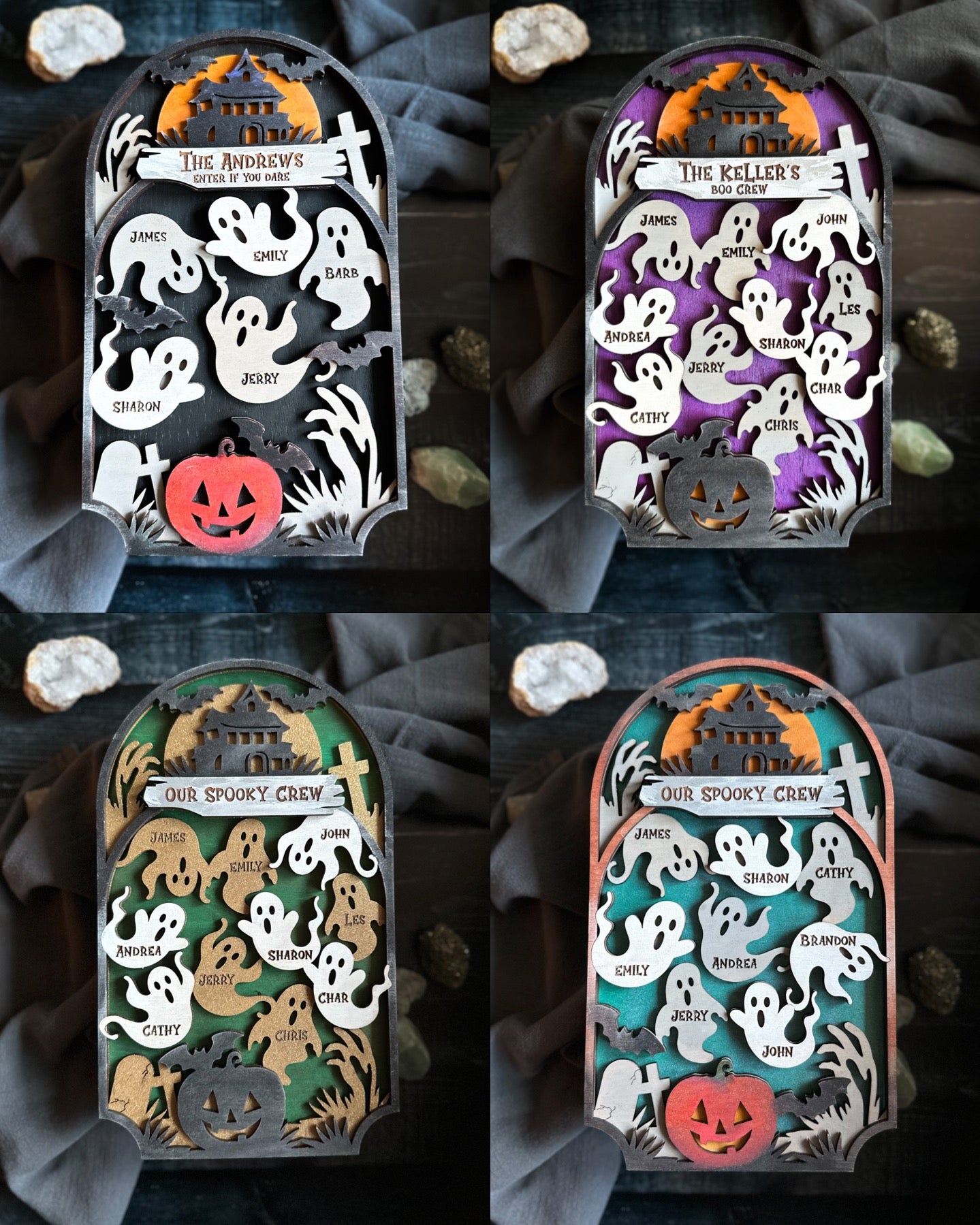 Fun "spooky" graveyard sign just in time for Hallowe'en. Each sign is customized with your names(up to 10) and a title of choice. Measures 6 x 10"