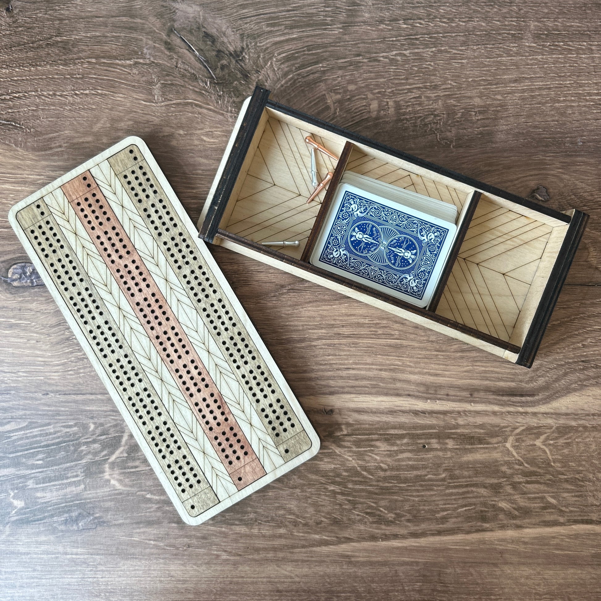 Made with love and attention to detail, our crib board box features a handy storage compartment beneath the board, perfect for keeping your cards and pegs organized. No more searching for misplaced game pieces!