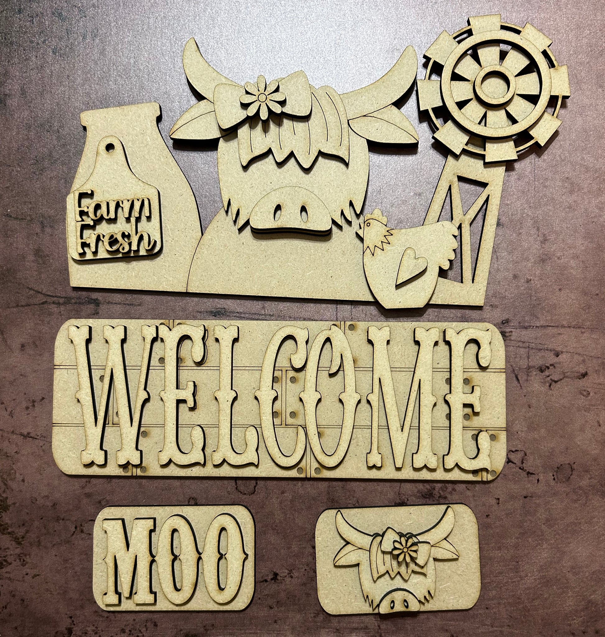 1 License plate with the word Moo or a small Highland Cow head ( you pick)